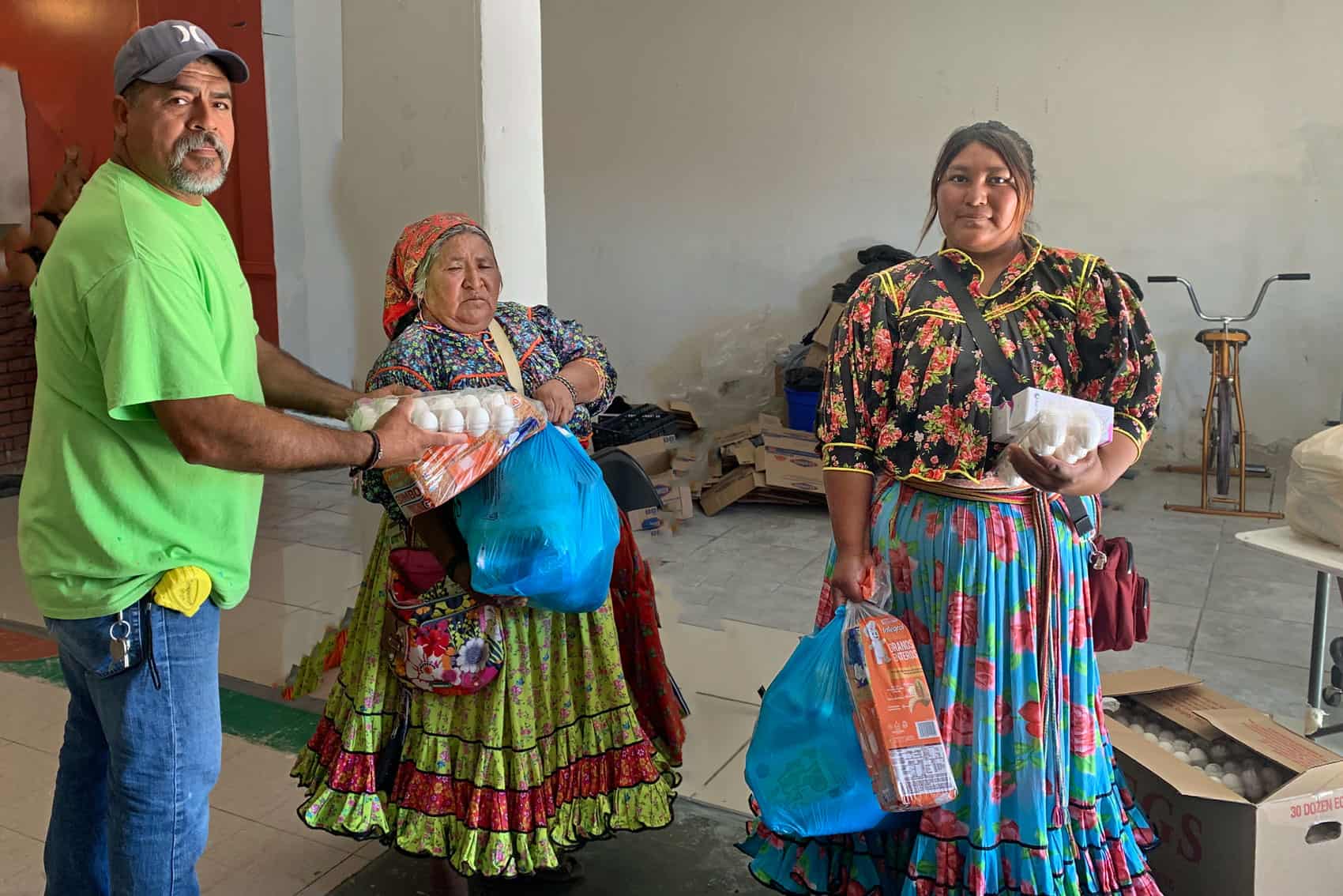 Border Partners’ José Luis Muñoz hands these women-led, indigenous families important basic supplies in a recent food distribution.